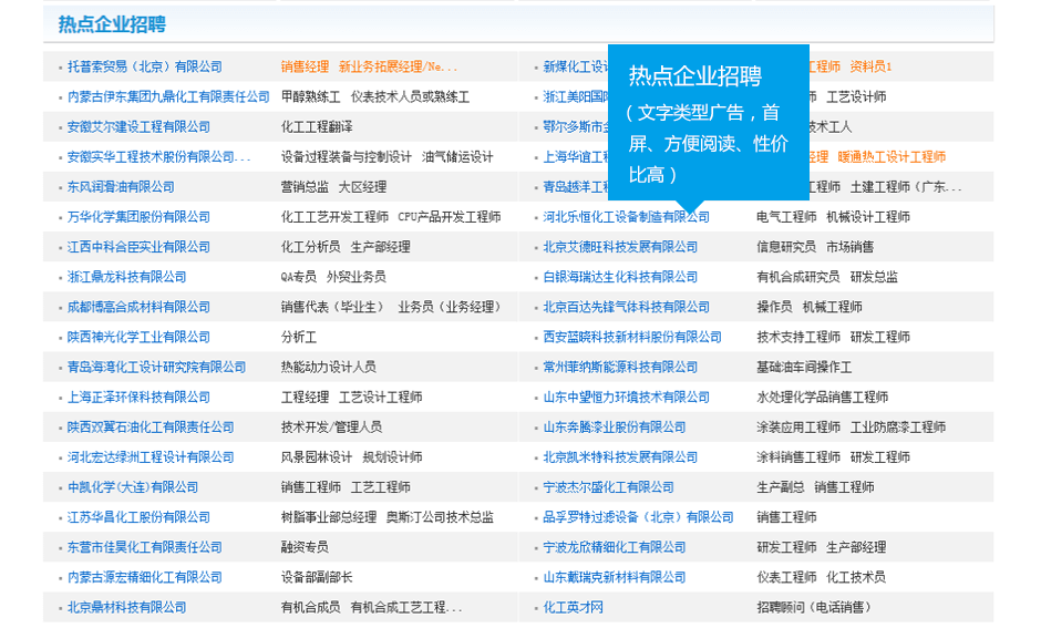 移動(dòng)廣告移動(dòng)端品牌招聘、熱點(diǎn)招聘、知名企業(yè)招聘等廣告類型,有效提升招職位的關(guān)注度。
